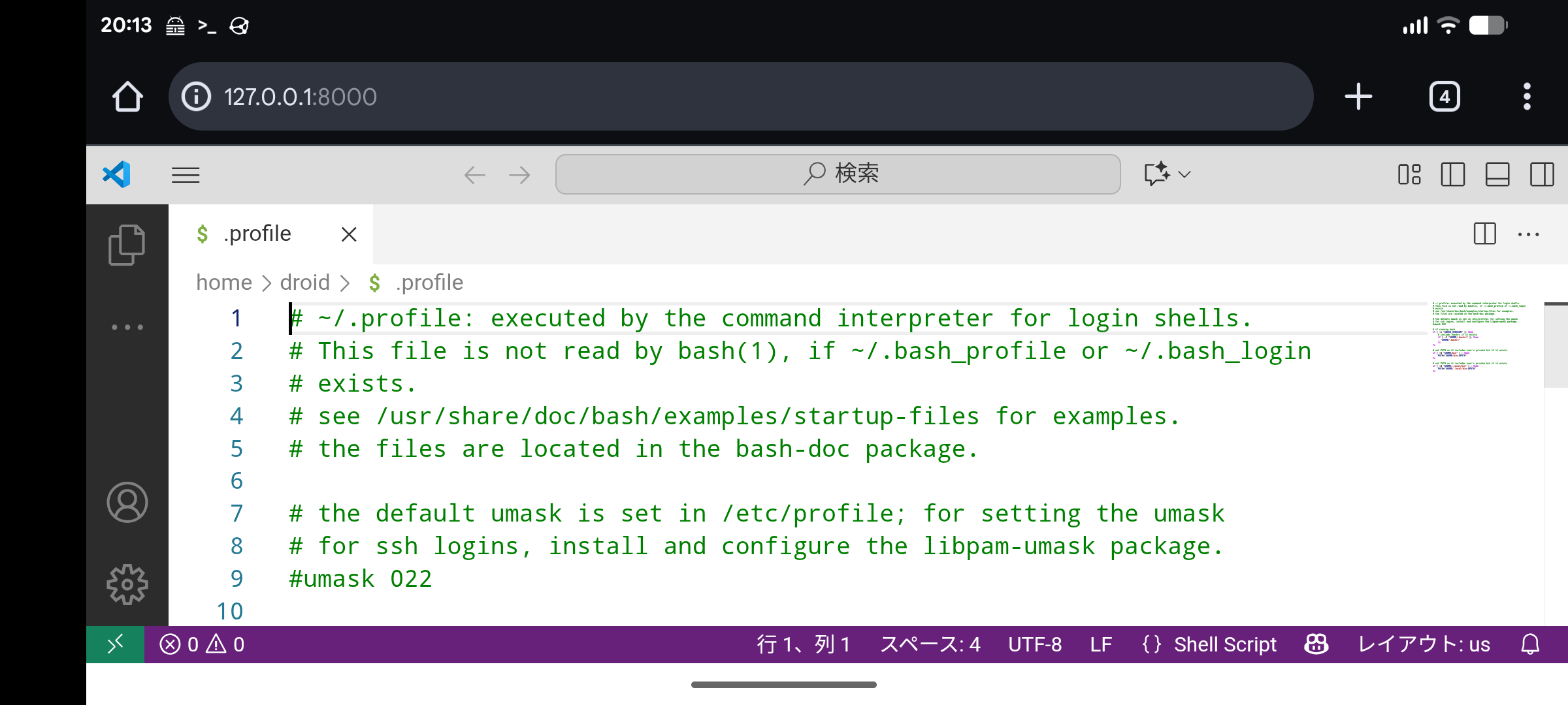 「ターミナルが新しいポートを開くリクエストをしました」と通知されるので許可する - あとはAndroidのWebブラウザからアクセスするだけ
