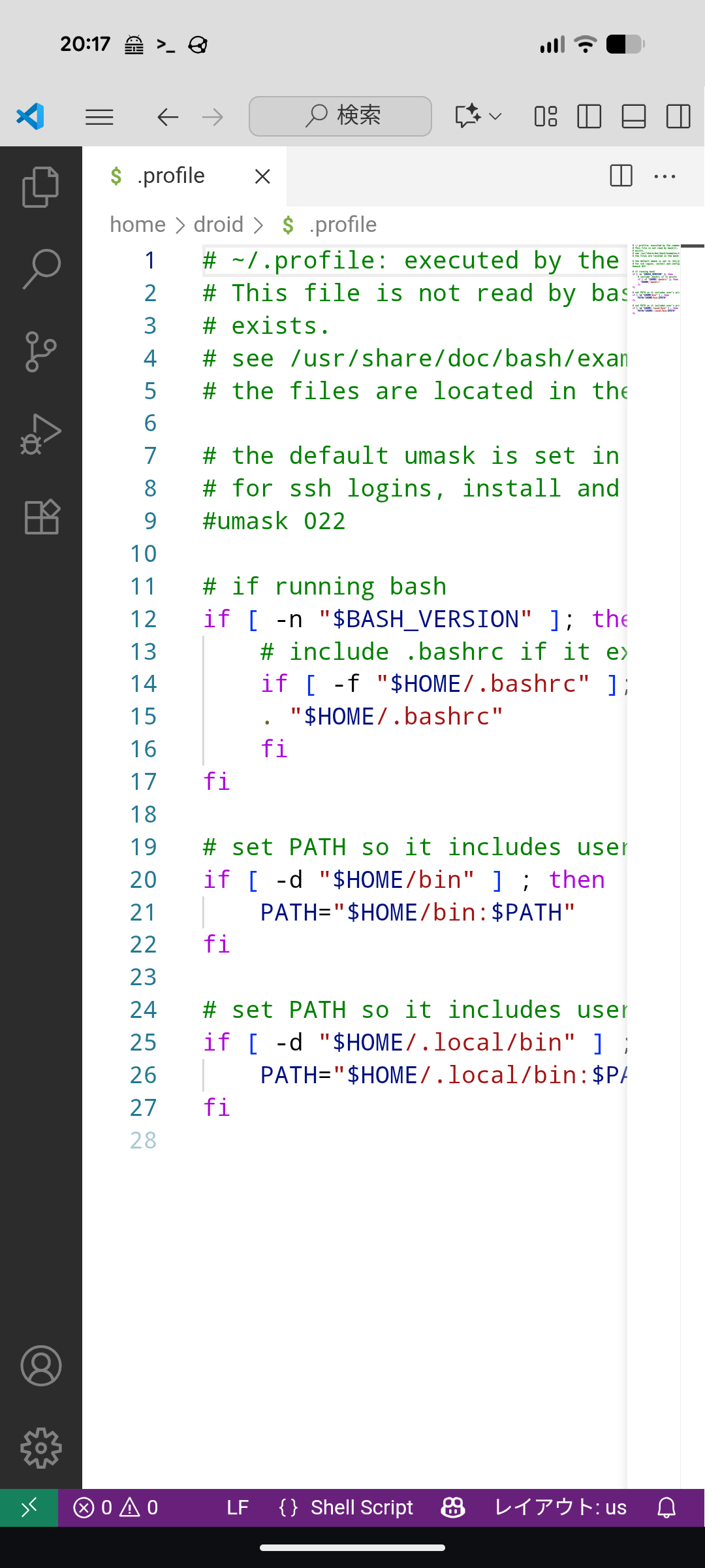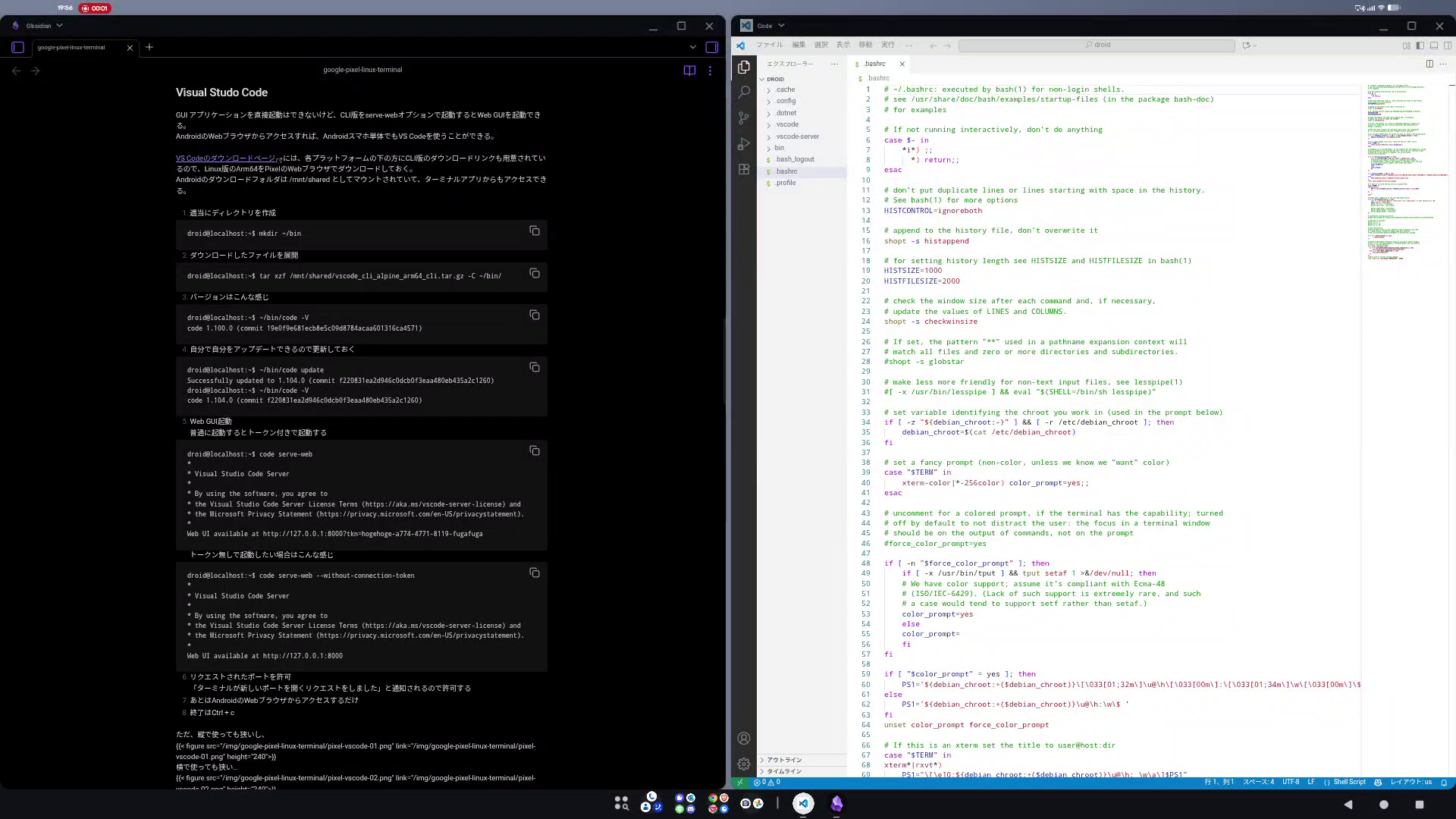 droid@localhost:~$ tar xzf /mnt/shared/vscode_cli_alpine_arm64_cli.tar.gz -C ~/bin/ - バージョンはこんな感じ
